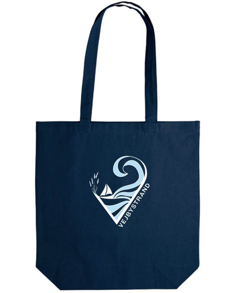En axelremsväska av 100% Oeko-Tex certifierad bomull. Erbjuds i färgen Marin-blå.